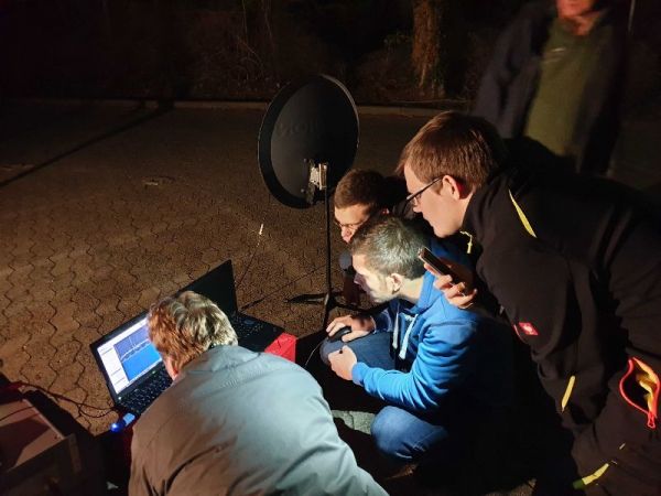 Der Sender wurde in GNURadio implementiert und mit einem HackRF One auf 2,4 GHz ausgegeben. Ein geliehener Leistungsverstärker sorgte für den nötigen Ausgangspegel bei Verwendung einer WLAN-Yagi-Antenne. Nach Ausrichten der beiden Antennen konnten erfolgreich mehrere QSOs geführt werden.
