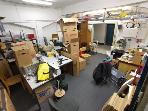 Nachdem wir letzte Woche die Werkstatt mit den Möbeln vorerst fertig eingerichtet haben (es sollen später noch ein paar Möbel getauscht werden), haben wir diese Woche viel eingeräumt und teilweise auch schon aufgebaut. Zudem haben wir weiter altes Zeug ausgemistet und vor allem Elektro-Schrott entsorgt.